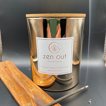Packaged in our signature calico bag with wooden mandala candle coaster.